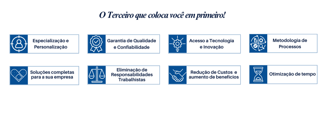Fornecer aos clientes mão-de-obra qualificada, tendo a qualidade como conceito de valor agregado aos serviços prestados, oferecendo tranquilidade através de soluções práticas, modernas e integradas, antecipando as necessidades de seus clientes e superando suas expectativas.